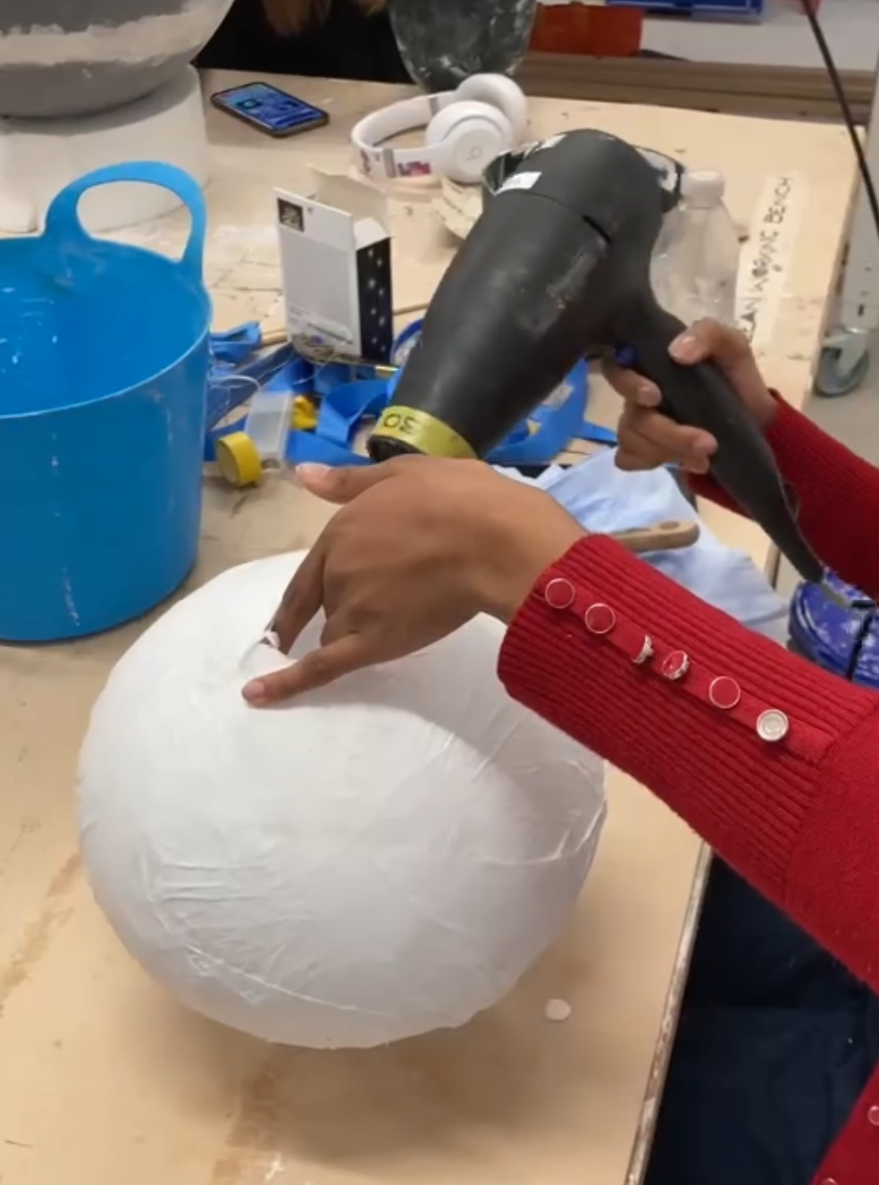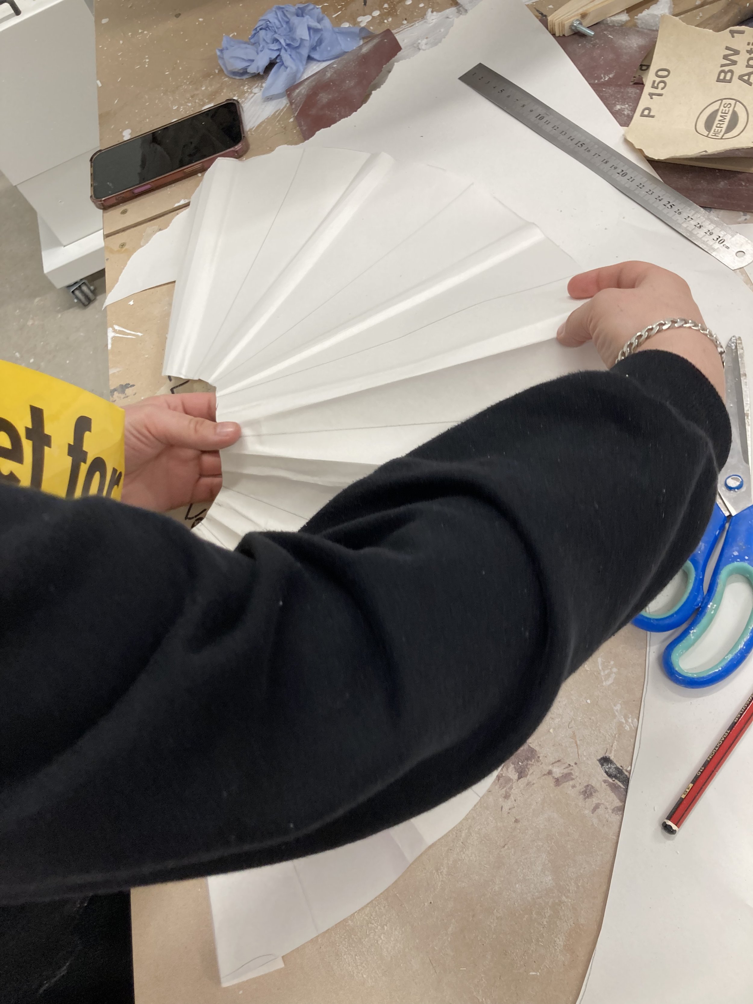 Students worked with 3D Fabrication Technician James Burkill in the 3D workshop at Norwich University of the Arts, exploring how the song’s lyrics and narrative could inspire interactive props. Each student experimented with materials to create objects that express their own interpretation of the track and could be used dynamically in the music video performance.